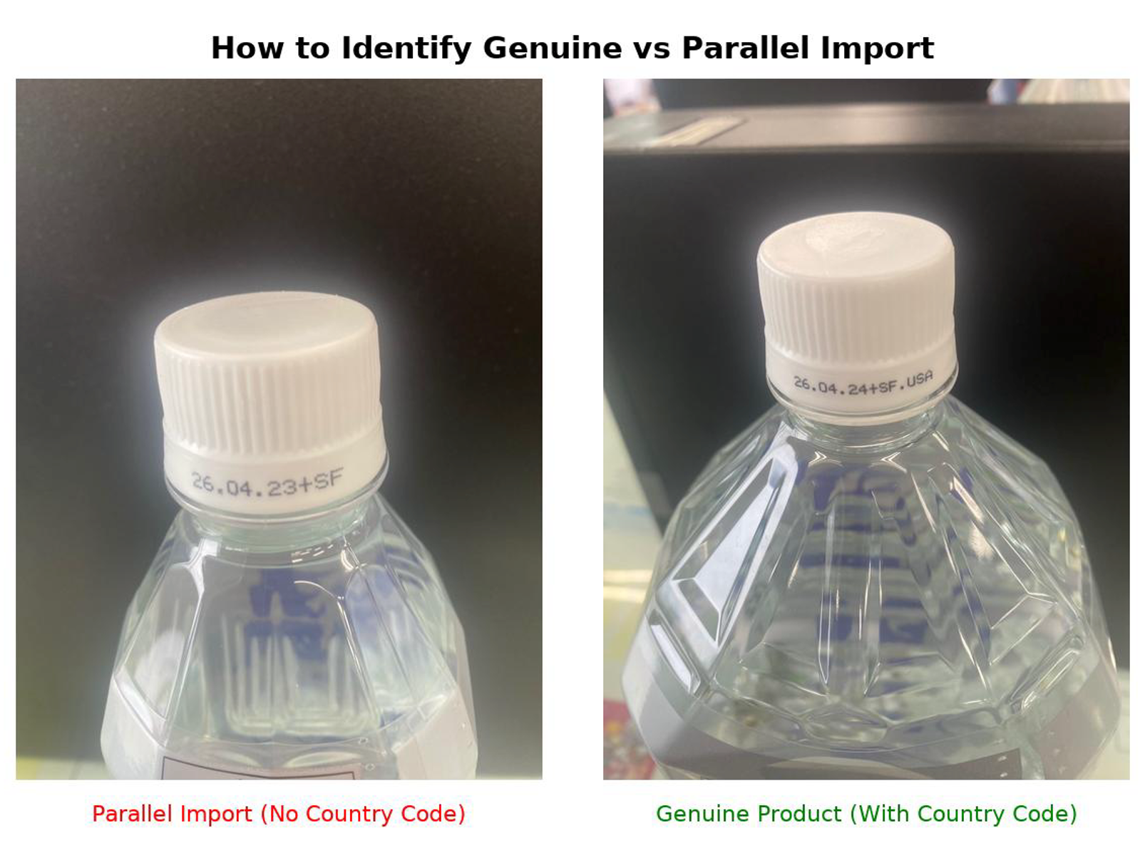 ・Parallel import goods: There is no country code on the cap, only "manufacturing date + manufacturing code".